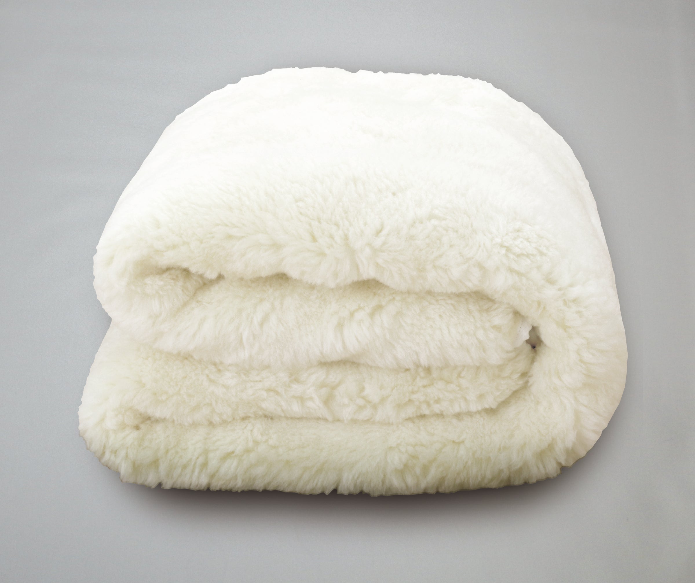 ●ウールはメリノ種を改良したコリデール種を使用。均一な縮れを保ち、ヘタりにくい弾力性とやわらかさを兼ね備えた毛質は、体を支える敷き毛布に適しています。