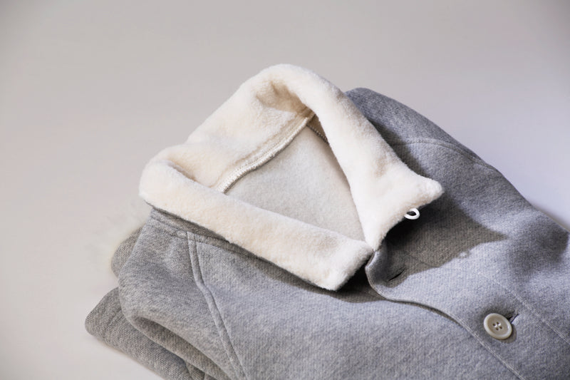 特殊な編み方により編み上げた羊毛素材のこと。表側はムートンのようなびっしりと毛足のある羊毛で、裏地はフラットな編地になっています。ニット製品なので、洗濯機で洗えるのが特徴です。