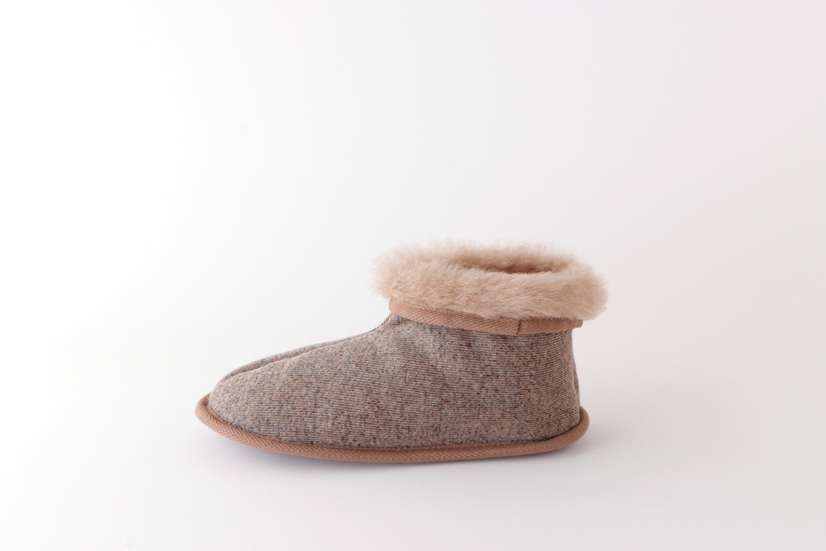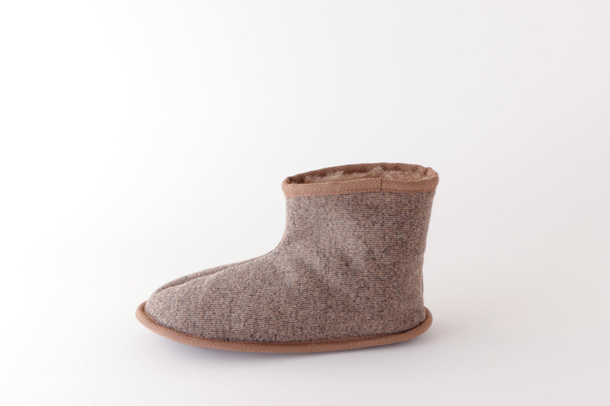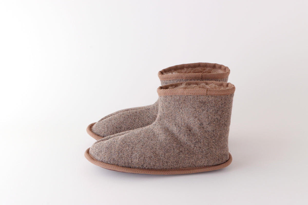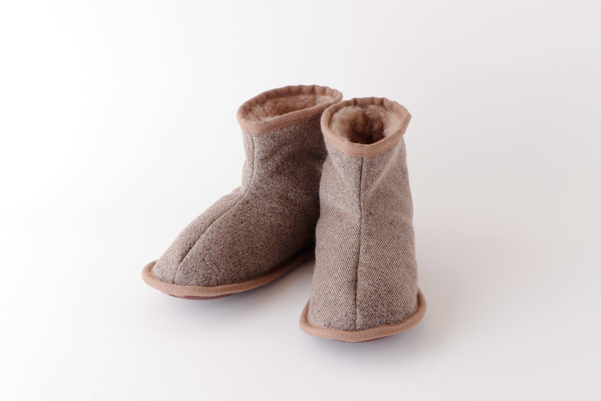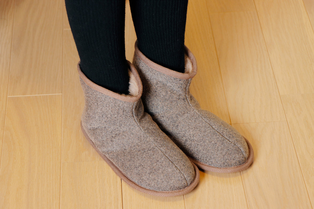 ●足首まで温かいブーツタイプの室内履きです。羊毛素材の1枚仕立てなので、やわらかく足にフィットします。
